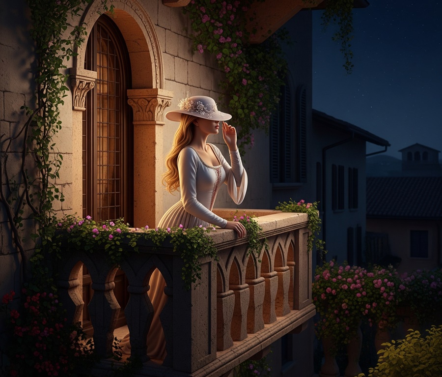 "Giulietta è in piedi affacciata al famoso balcone. Con lo