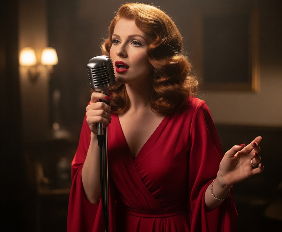 rosso fuoco, dalle morbide onde a toccare le spalle,